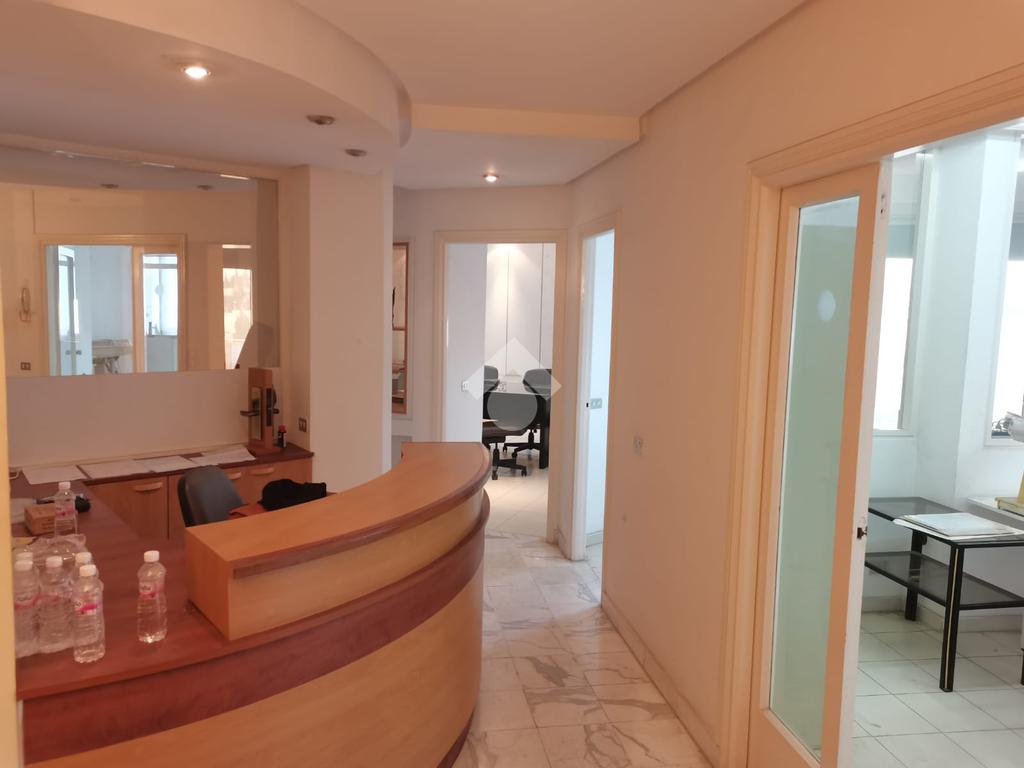Il se compose d’un hall d’accueil, d’un débarras, ainsi que de trois bureaux, dont deux avec placards intégrés et un avec terrasse. Le bien comprend également deux points d’eau et une kitchenette.